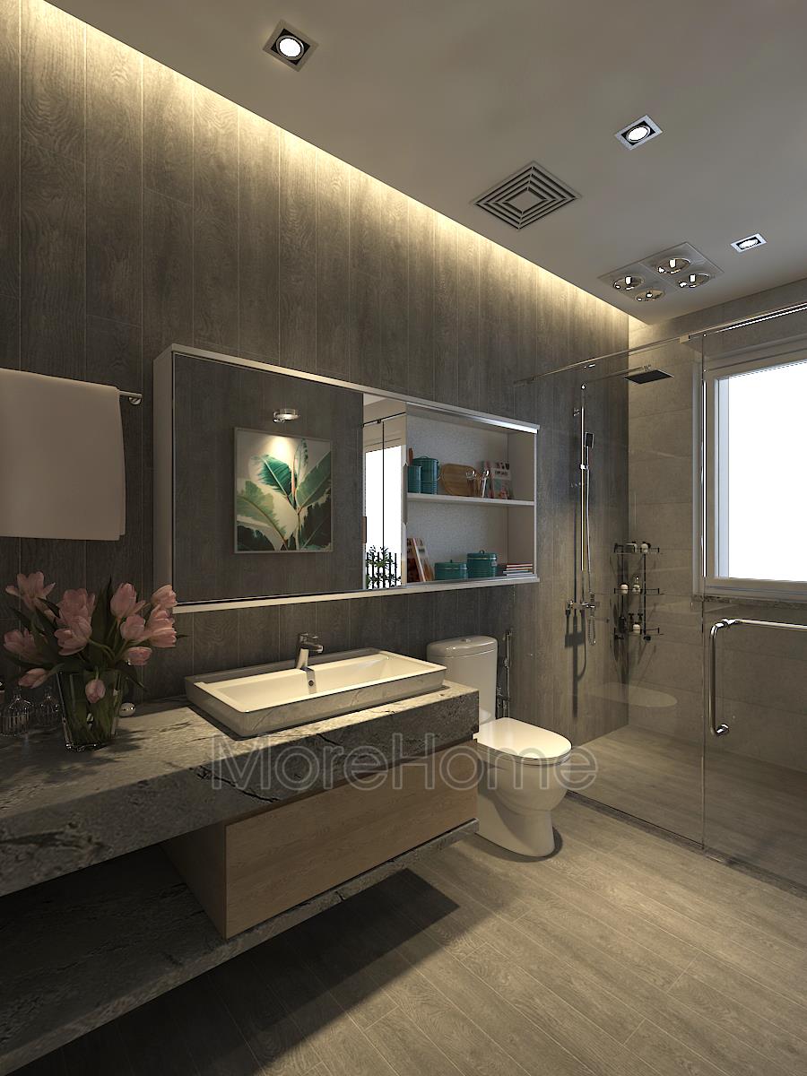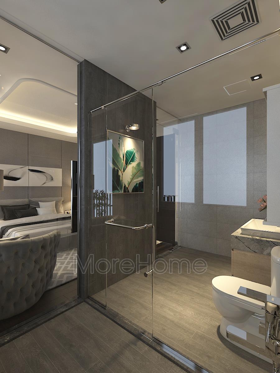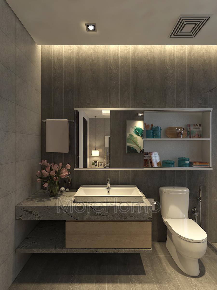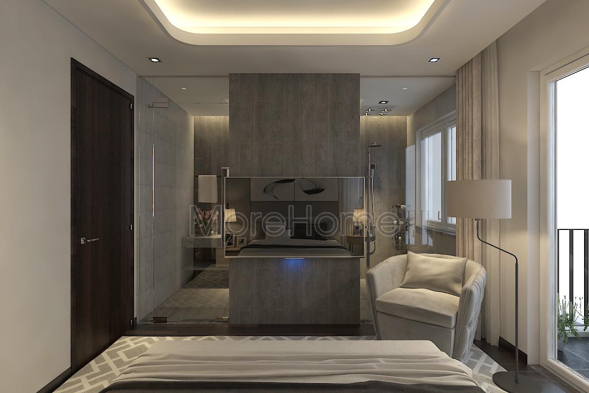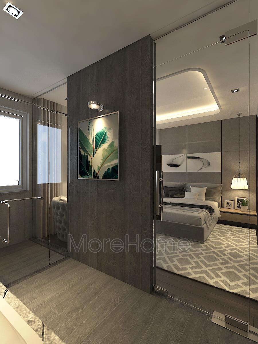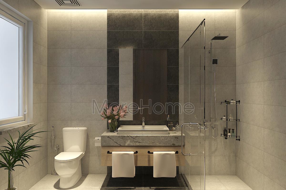 Khác với phòng Master thì phòng ngủ bé được tách rời với phòng tắm. Phòng tắm được thiết kế với vách ngăn kính tiện nghi, hiện đại.